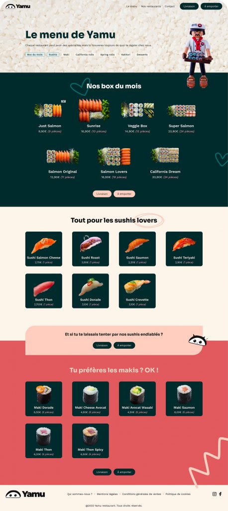 - Flowchart avec les différents parcours : vente à emporter et livraison à domicile